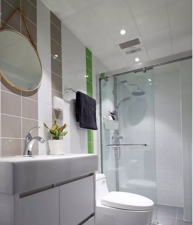 次衛(wèi)選用了三種顏色的墻磚,用不規(guī)則的顏色布局來(lái)打破沉悶感。