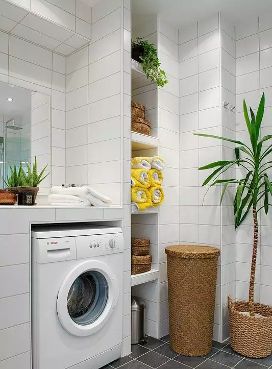 如果你家有兩個(gè)廚房或者喜歡吃較西式食物,洗衣機(jī)放廚房也是個(gè)不錯(cuò)的選擇。