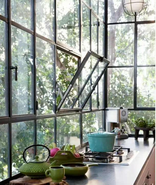懸窗是指沿水平軸開(kāi)啟的窗,一般分為分為上懸窗、下懸窗、中懸窗,能開(kāi)啟的范圍不大,通風(fēng)效果一般,但是能做到很好的密封,隔熱性能好,常見(jiàn)用于衛(wèi)生間和廚房空間。