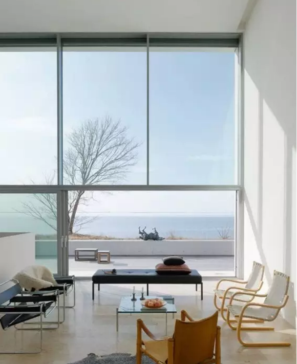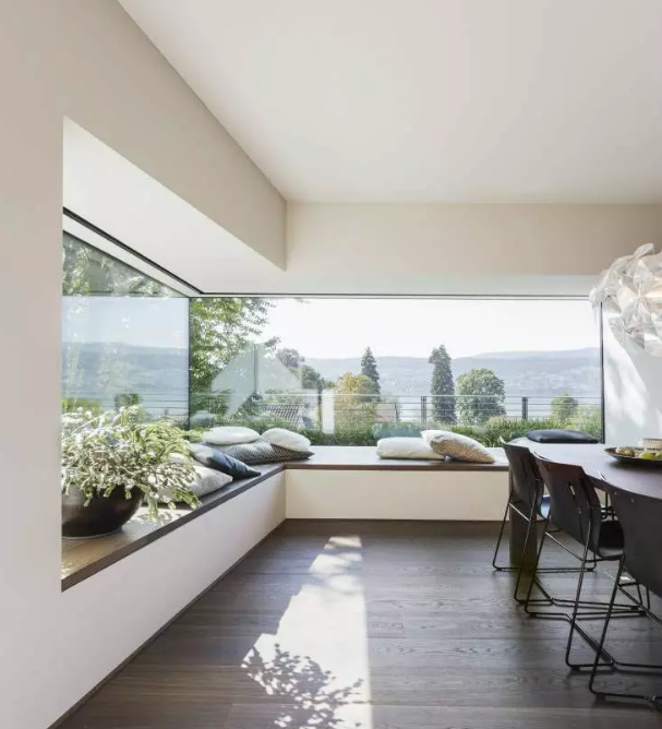大面積的固定窗也很受歡迎,很好的取到室外的美景,它不僅采光好,而且密封、隔熱性較好,但是不能開(kāi)啟,只能用在家里的某一部分,因?yàn)樗荒荛_(kāi)窗換氣。