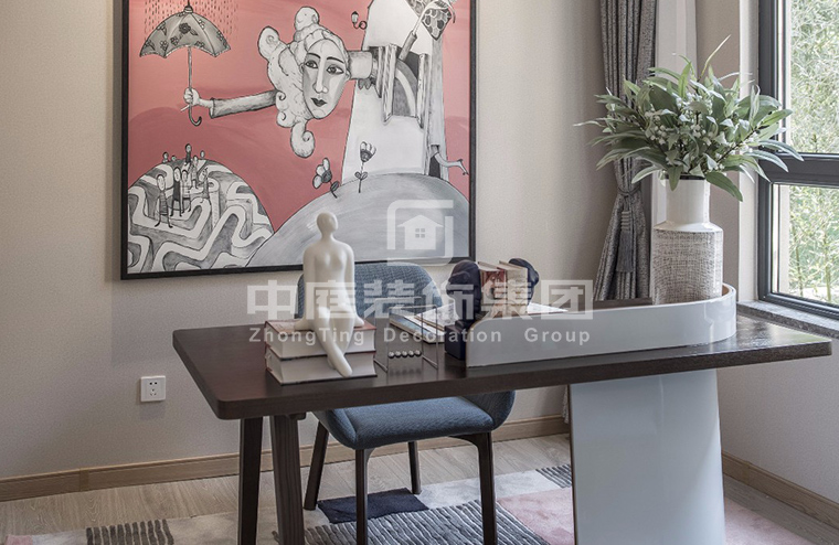 書房的書桌最好靠近窗邊。為避免閱讀造成眼睛疲勞,可考慮采用色度較接近柔和晨光的、不閃爍穩(wěn)定的燈具,以減輕視覺負擔(dān)。