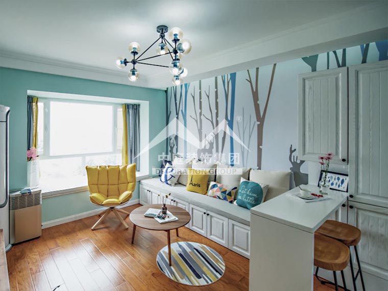 1、盡量使用清新一點的墻漆進(jìn)行補(bǔ)色,天藍(lán)、亮黃都是不錯的選擇。