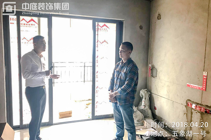 集團(tuán)總裁丁總與剛好來(lái)現(xiàn)場(chǎng)的業(yè)主進(jìn)行交談,業(yè)主對(duì)公司服務(wù)特別滿意,他說(shuō)到,他平時(shí)只有周六周日休息時(shí)才會(huì)來(lái)工地,公司的6大管家都會(huì)把每個(gè)流程在微信服務(wù)群上進(jìn)行匯報(bào),很放心省心。