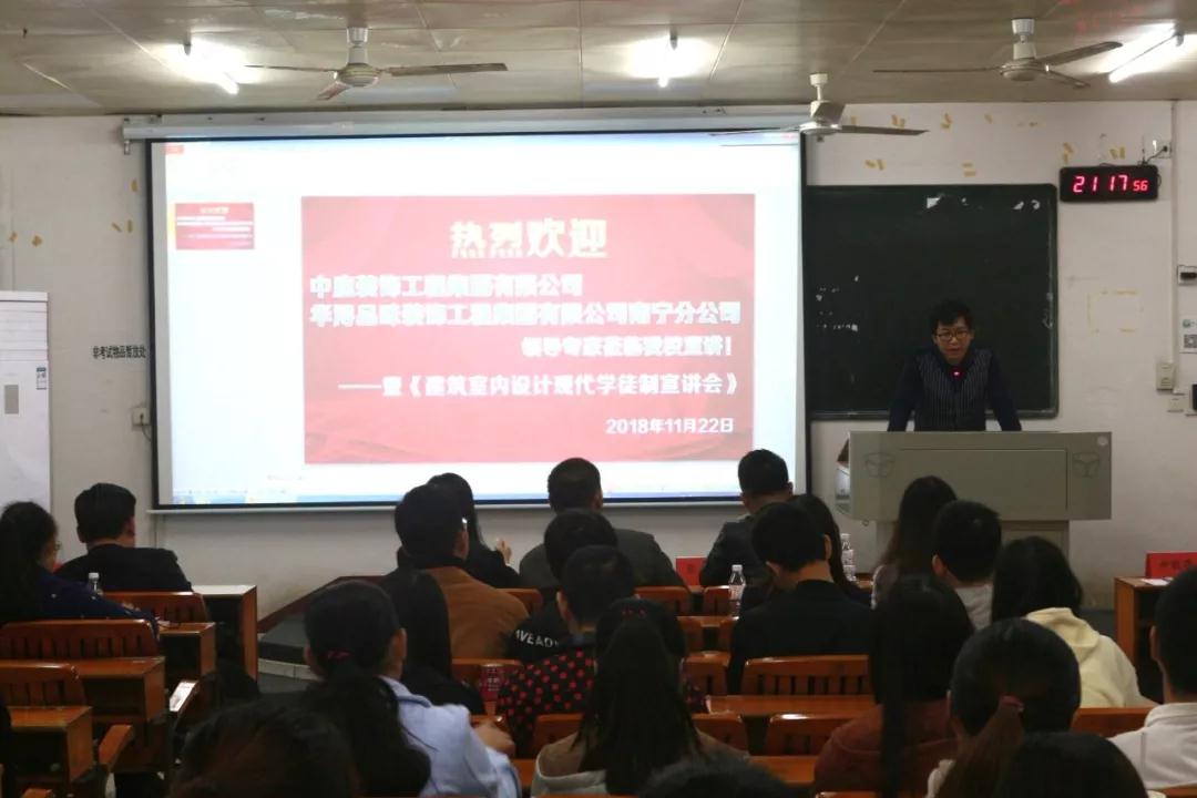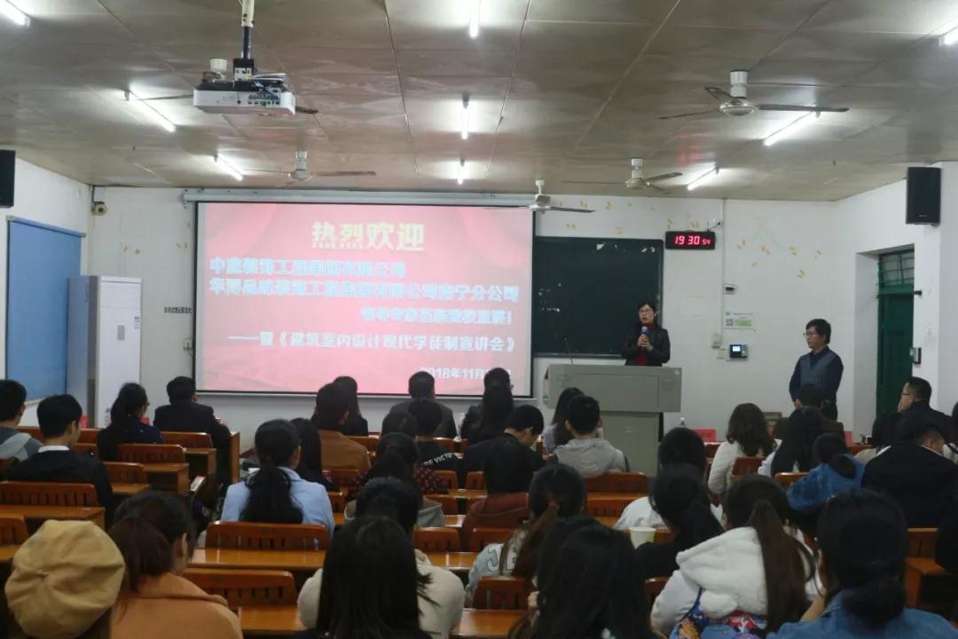 在前期的籌備活動(dòng)中,已邀請(qǐng)過廣西農(nóng)業(yè)職業(yè)技術(shù)學(xué)院老師和學(xué)生來中庭裝飾集團(tuán)進(jìn)行過參觀與交流,彼此都留下非常好的印象,2018年11月22日,我公司張立安張總帶領(lǐng)營銷三部蘇家毅蘇經(jīng)理和人力資源部黃紅娟黃主管等人去到學(xué)院進(jìn)行宣講,讓老師和學(xué)生們更加了解中庭裝飾集團(tuán),讓他們明白,選擇我們,是正確的。