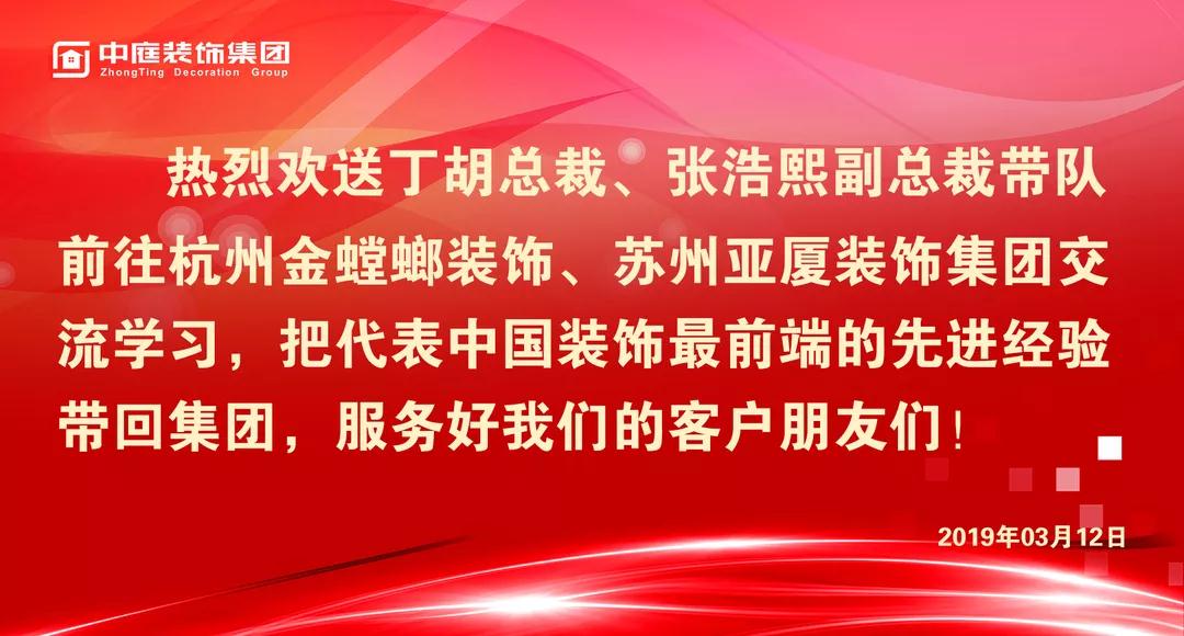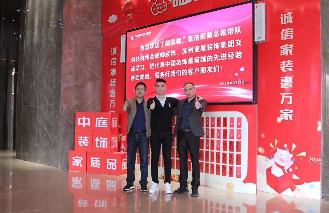 2019年3月12日,集團(tuán)總裁丁胡、副總裁張浩熙帶隊前往杭州金螳螂裝飾、蘇州亞廈裝飾集團(tuán)交流學(xué)習(xí)。