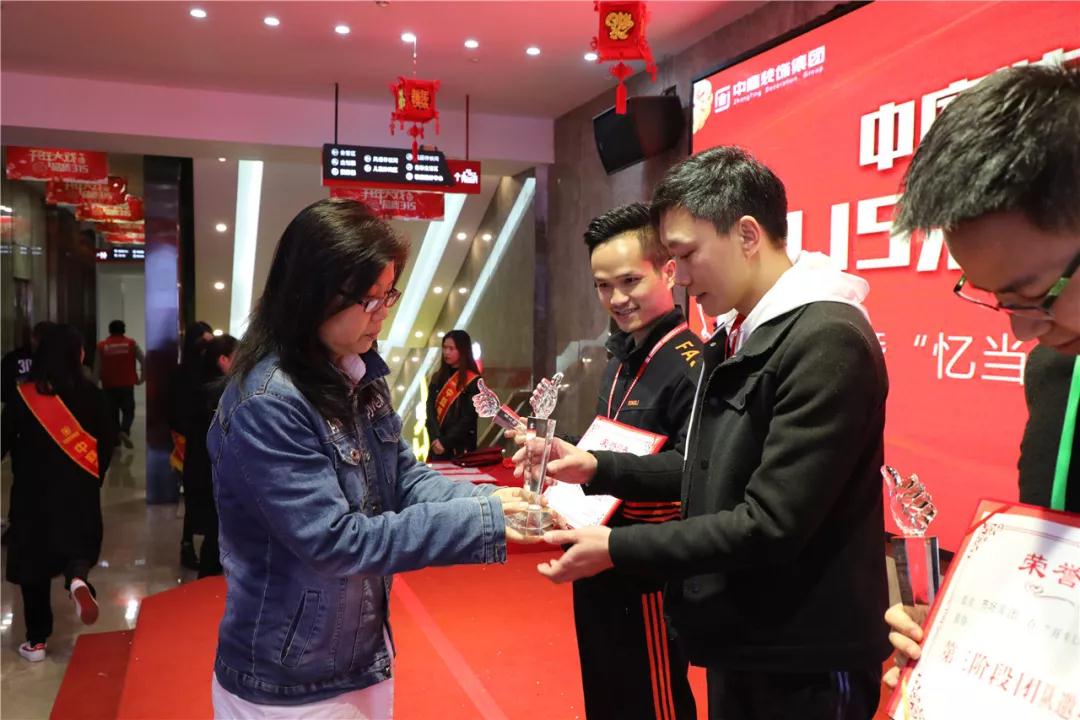 集團商學(xué)院院長趙立鳳為獲獎團隊頒發(fā)榮譽證書和獎杯