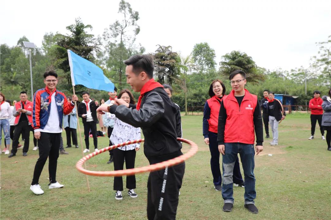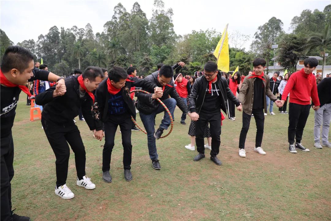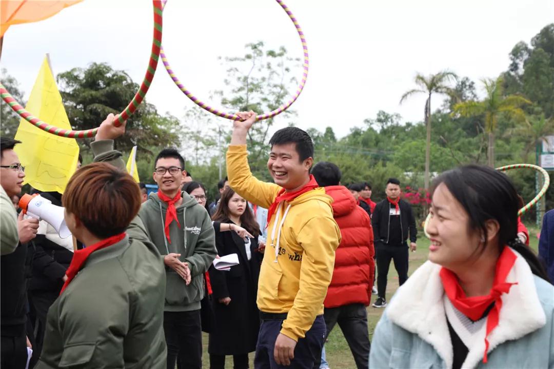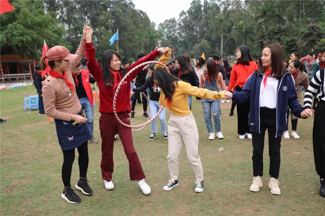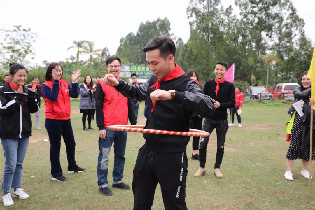 游戲規(guī)則:小組人員手牽手,從第一個人傳遞拉呼啦圈至最后一人,中途隊員不能放開手或者用手去接觸呼啦圈,否側(cè)重來,完成任務(wù)團隊。