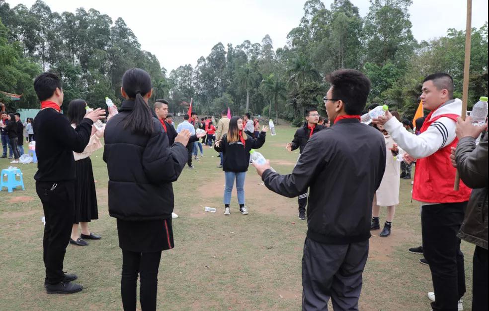 贏取勝利需要謀略,礦泉水瓶傳遞講究的是團隊間的協(xié)作能力,考驗大家默契度的時候到了