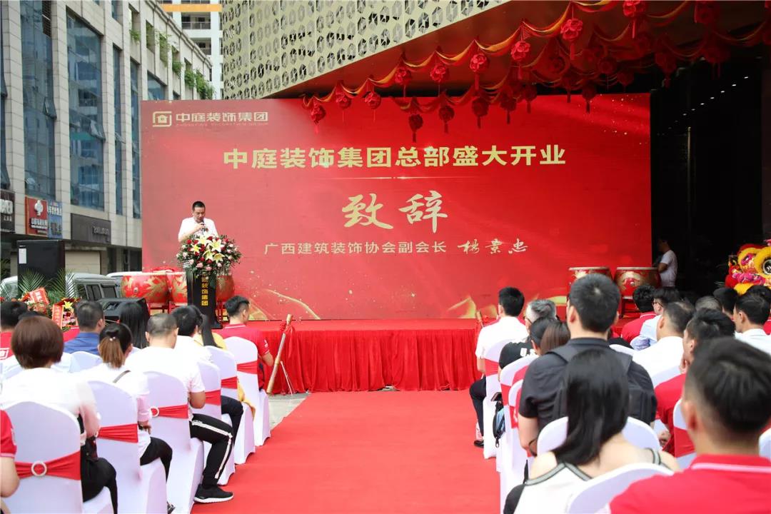 楊會長代表廣西建筑裝飾協(xié)會為集團的盛大開業(yè)慶典活動送上真摯的祝福,同時對集團多年來不忘初心,在廣西裝飾行業(yè)深耕細作,以優(yōu)質的服務和質量為廣大家庭打造了環(huán)保、綠色、健康的居住環(huán)境,營造了良好的行業(yè)環(huán)境給予高度的贊揚和認可,也預祝中庭裝飾集團此次開業(yè)活動圓滿成功,取得佳績,更上一層樓!