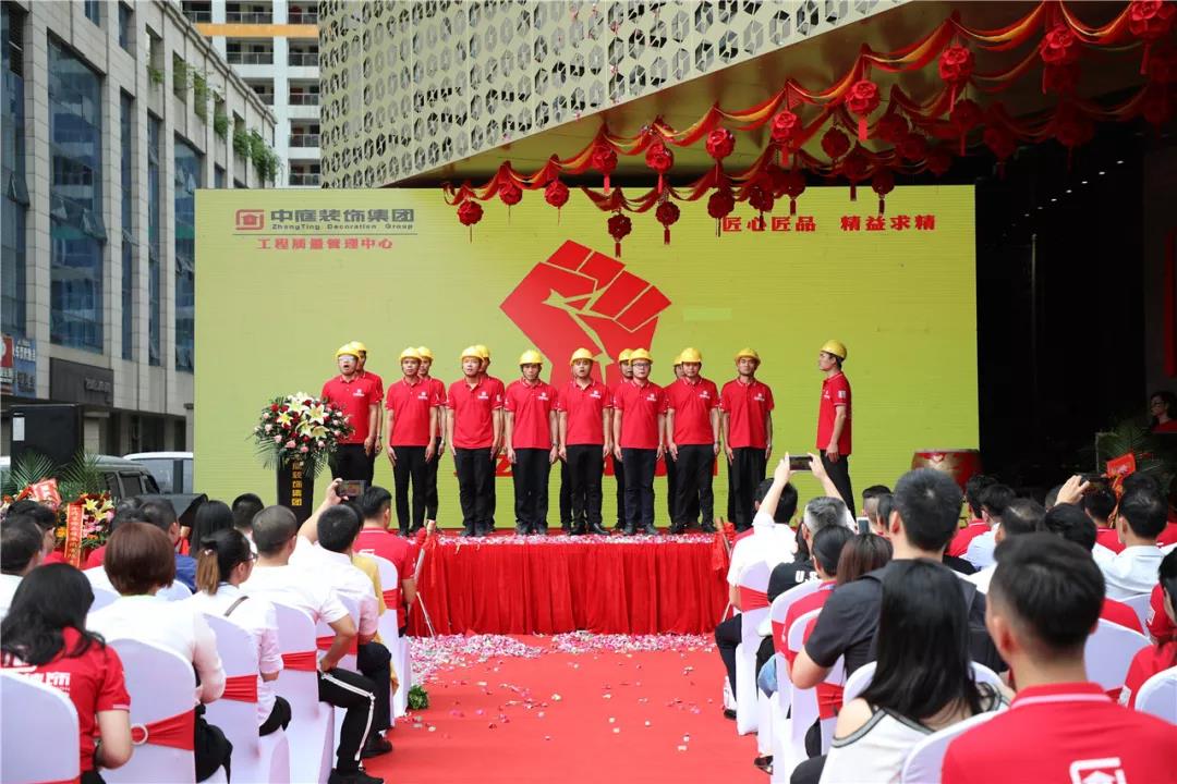 工程質量管理中心團隊登臺展示并進行宣誓,工程質量是企業(yè)的生命線,是我們發(fā)展的基石。秉承著“匠心匠品,精益求精”的品質理念,做到公平公正、有責必追、揚清抑濁、酬功給效;給客戶提供真誠、專業(yè)、迅速、周到的服務,打造打造環(huán)保、綠色、健康的居住環(huán)境。