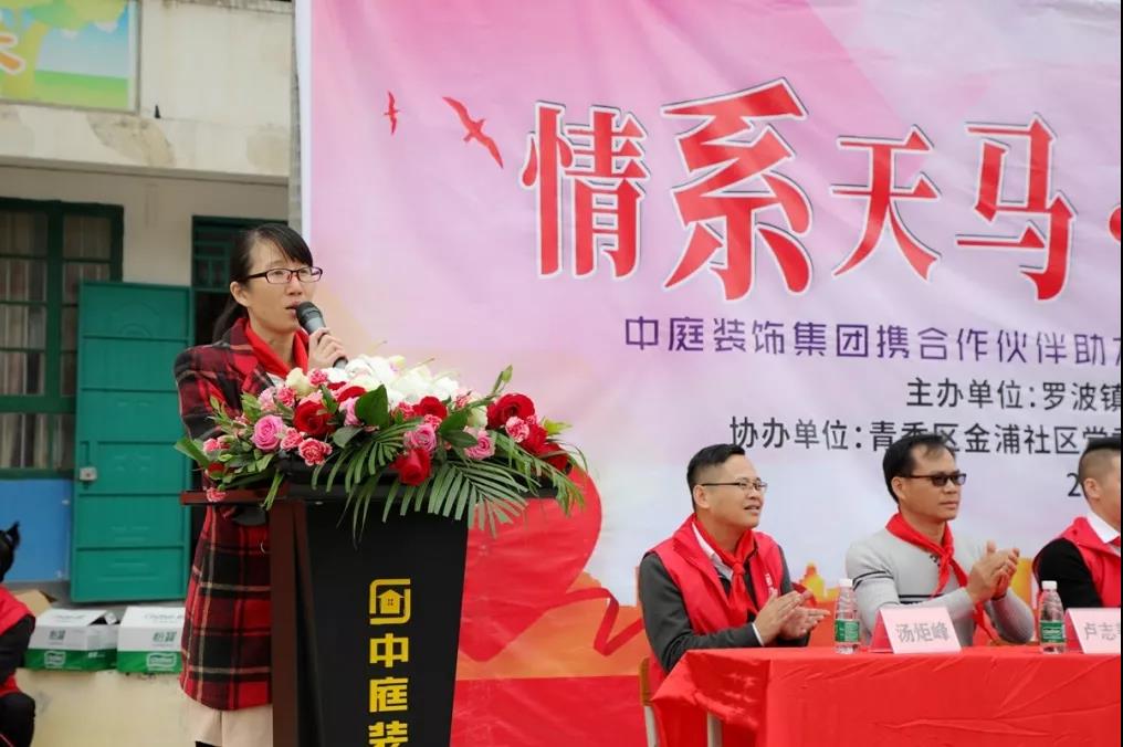 許書(shū)記表示,感謝中庭裝飾集團(tuán)組織的教育扶貧公益活動(dòng)。讓我們相聚在這里,深入貫徹習(xí)近平總書(shū)記“扶貧先扶志,扶貧必扶智”的重要指示精神,為天馬小學(xué)教育扶貧貢獻(xiàn)一份力量。