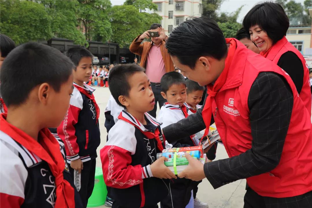 ▼中庭裝飾集團(tuán)管理層人員贈(zèng)予學(xué)生學(xué)習(xí)用具、玩具