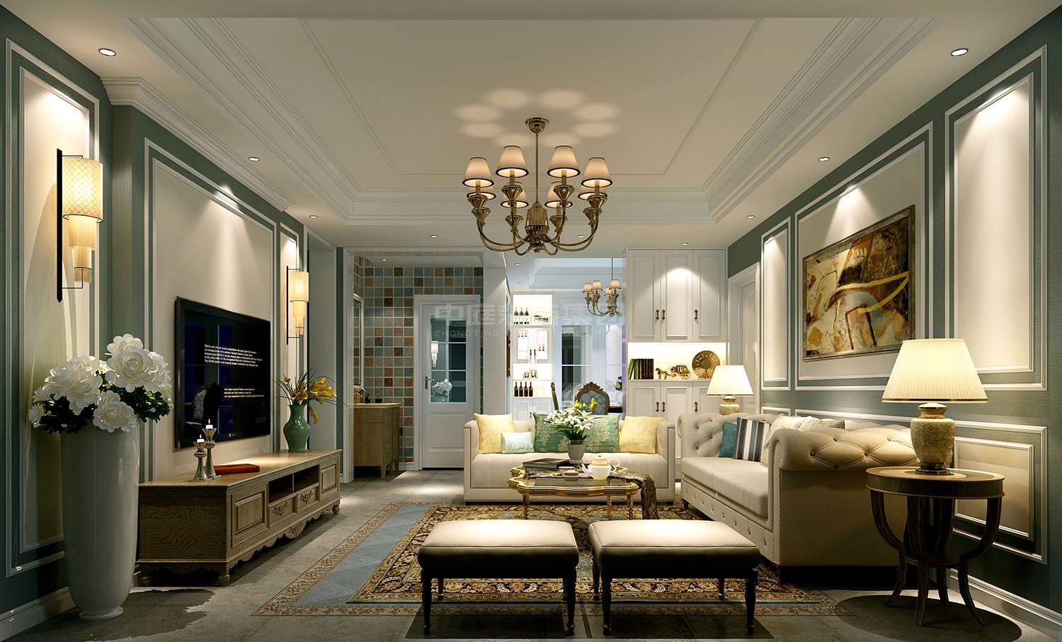 施工面積:120-150㎡| 設(shè)計風(fēng)格:美式風(fēng)格