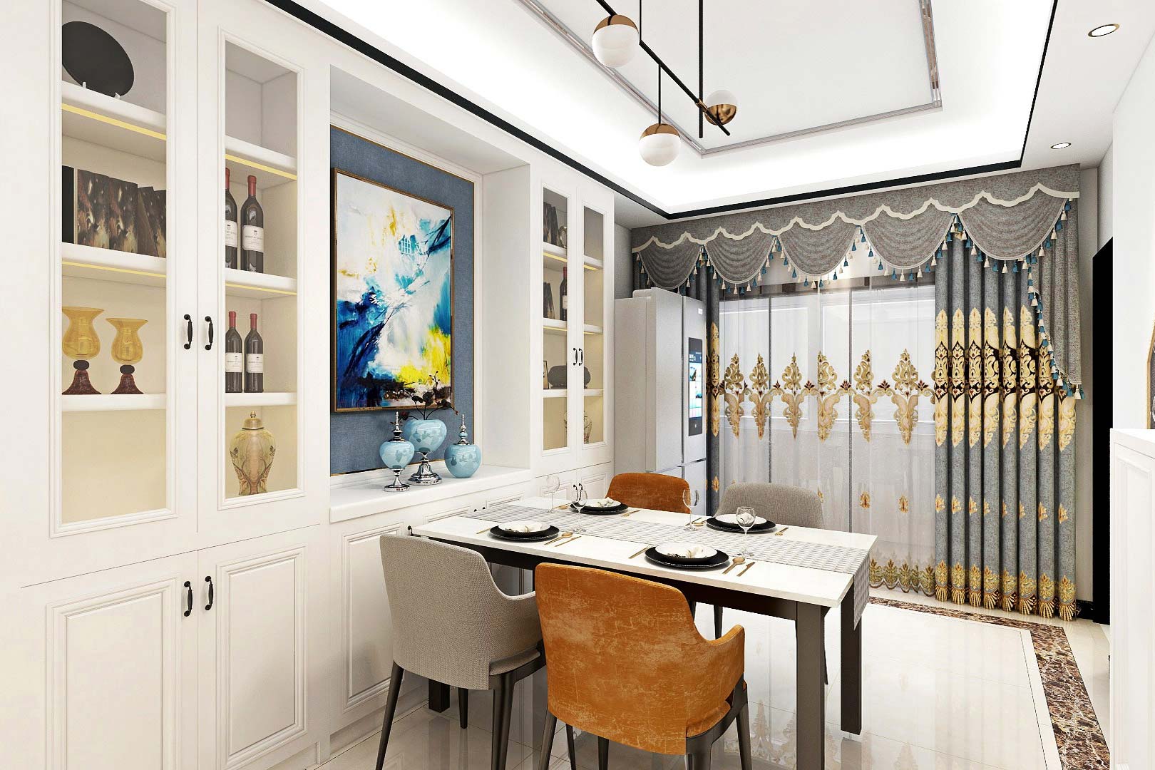 瀏覽量:332此案例戶型為4房2廳2衛(wèi),總面積120㎡,屬于現(xiàn)代輕奢風(fēng)格,整體以灰白色調(diào)為主,以明艷色彩點(diǎn)綴為輔,打造了一個(gè)簡(jiǎn)約大氣的舒適居住空間。此外,空間以金屬元素作為點(diǎn)綴,用色彩的純度傳遞細(xì)膩的質(zhì)感。造型簡(jiǎn)潔,線條流暢的家具組合搭配,營(yíng)造出穩(wěn)定、協(xié)調(diào)、溫馨的空間感受,滿足現(xiàn)代家庭的輕奢需求。設(shè)計(jì)師用一些精致裝飾的小物品來彰顯主人自在有格調(diào)生活方式,凸顯其潮流精神與靈魂修養(yǎng)。