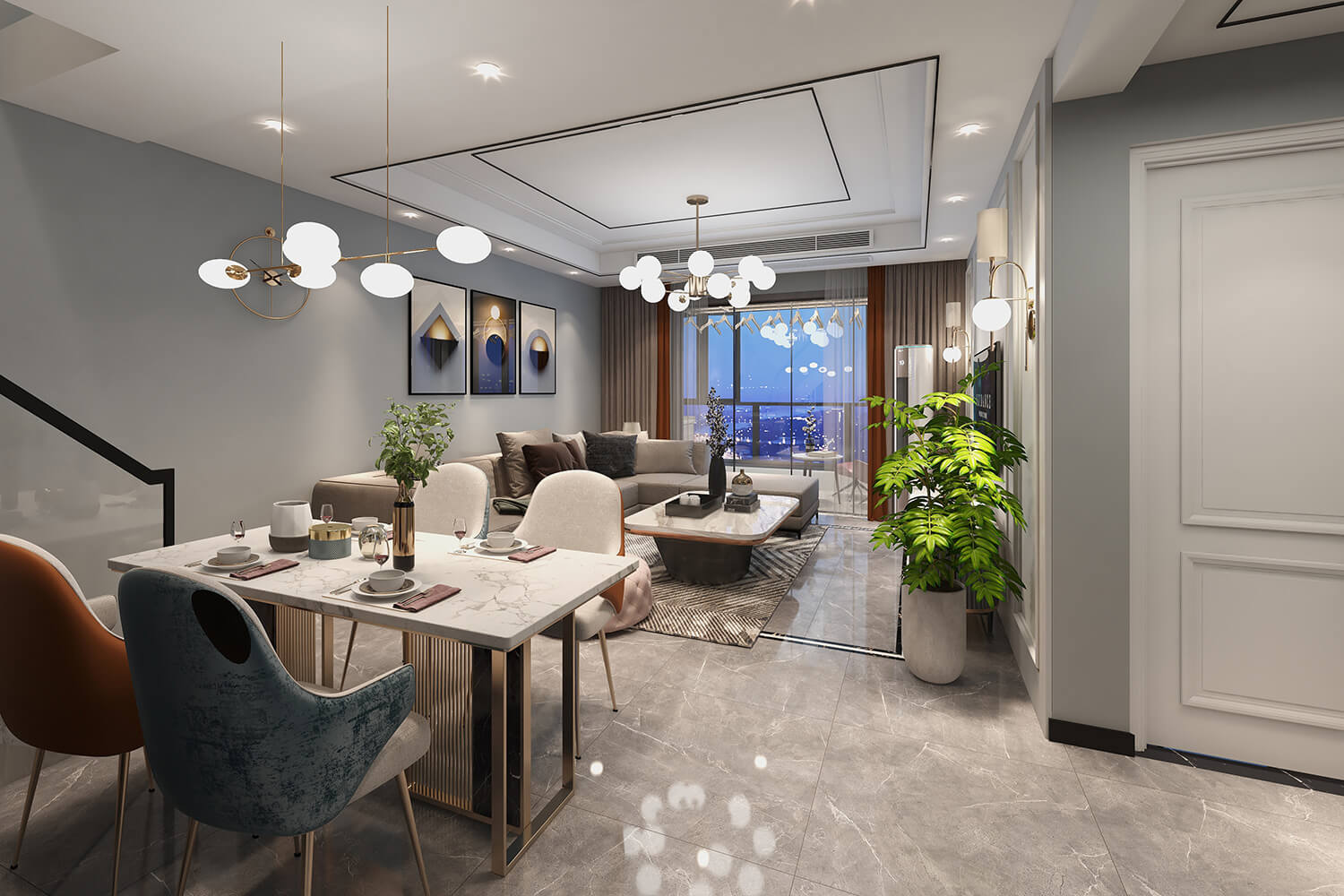 瀏覽量:454客廳比較寬敞,最大限度地利用空間。視覺空間看起來很寬敞,燈光效果也很好。客廳家具方面,采用灰色色調(diào)和金屬元素點綴,營造平靜而不失時尚氛圍。地面用灰色的地磚來裝飾,使整個客廳顯得簡單舒適,顯露出一種奢華感。奢華與金錢或其他一切無關(guān),就像臥室里沒有奢華的裝飾或華麗的裝飾一樣。只有合適的燈光舒適度。一種無負擔(dān)、高質(zhì)量的生活態(tài)度。
