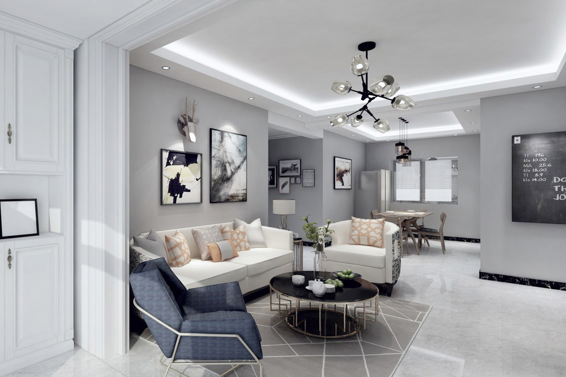 瀏覽量:290房屋整體主色調:黑白灰,踏入房門首先看到的是灰色墻面和黑色的矮柜形成鮮明的對比。給人的第一感覺有浪漫、時尚,卻不失美式中特有的奢華。墻面以灰色為主,地板以深灰色為主色。整體空間的動線非常流暢,給人很舒服的感覺。客廳整體設計偏美式,硬裝選色大氣,配以布藝沙發(fā)的軟裝,硬裝配以現(xiàn)代風格的電視背景墻,整體給人的感覺穩(wěn)重而簡潔。美式的顏色不可過于濃重,在混搭風格中,只可點綴,它的作用是調節(jié)空間整體的氣氛。