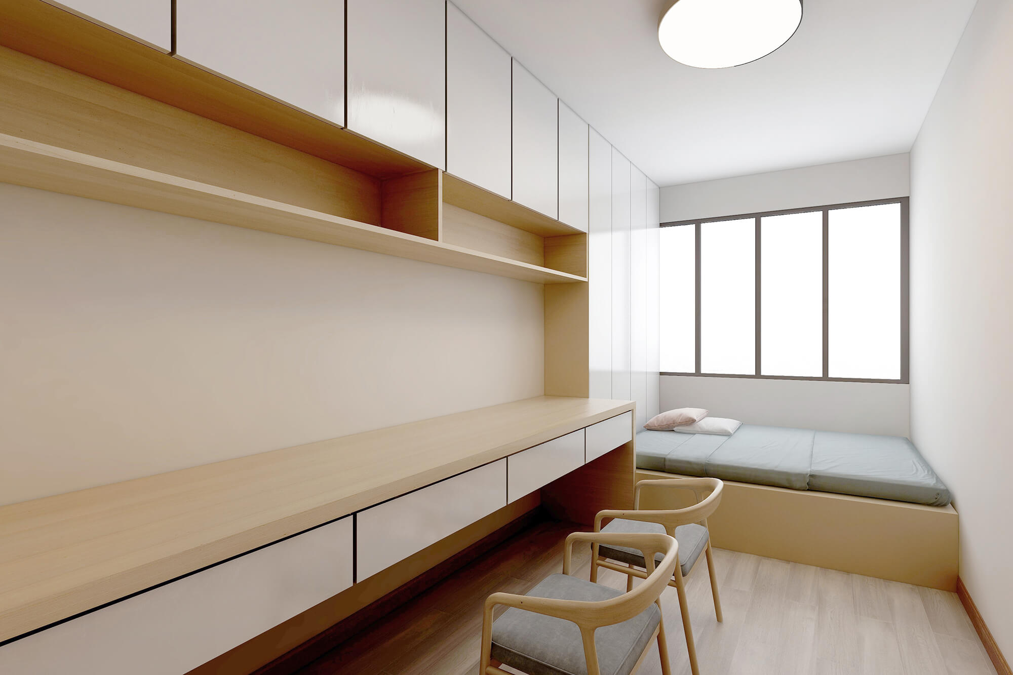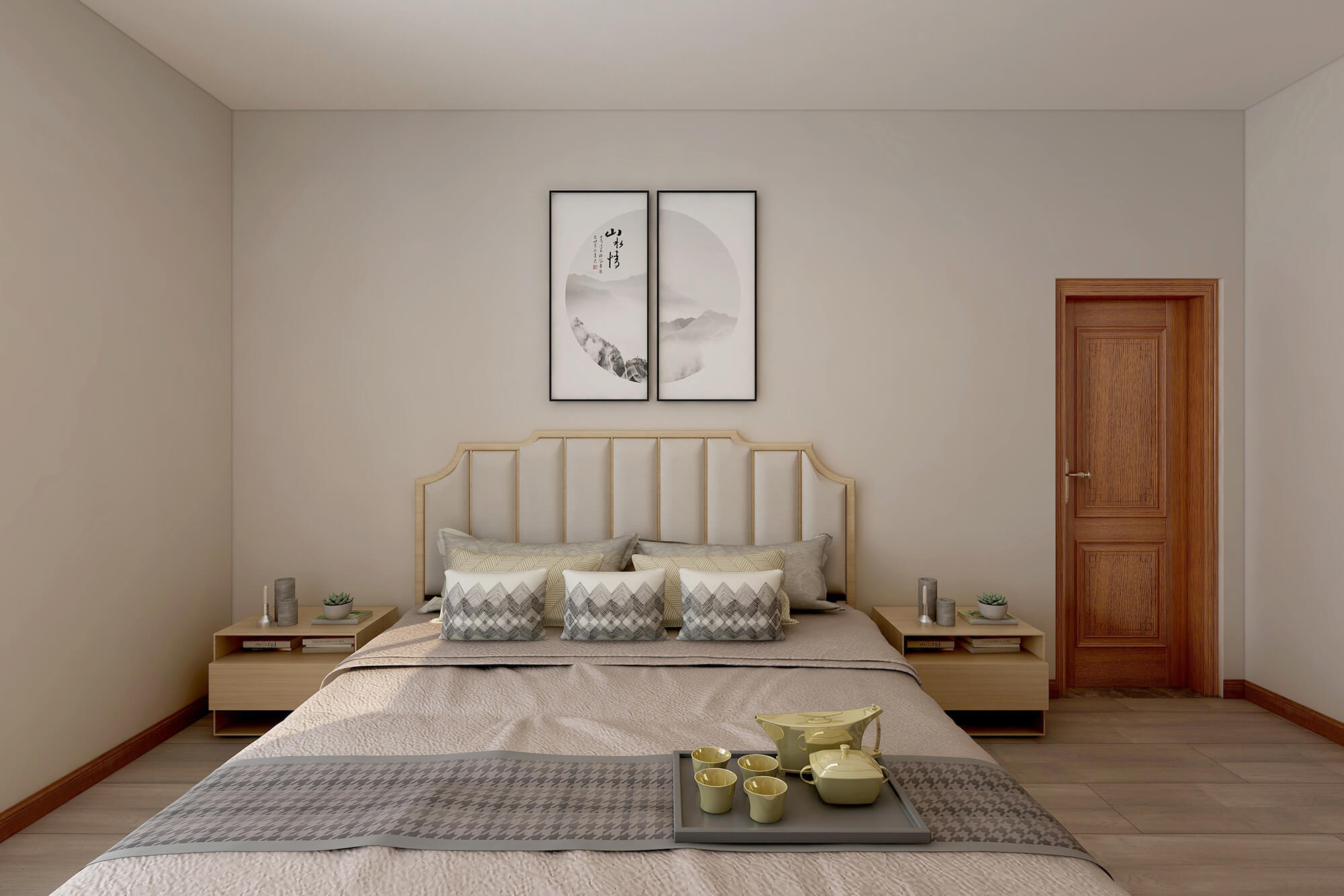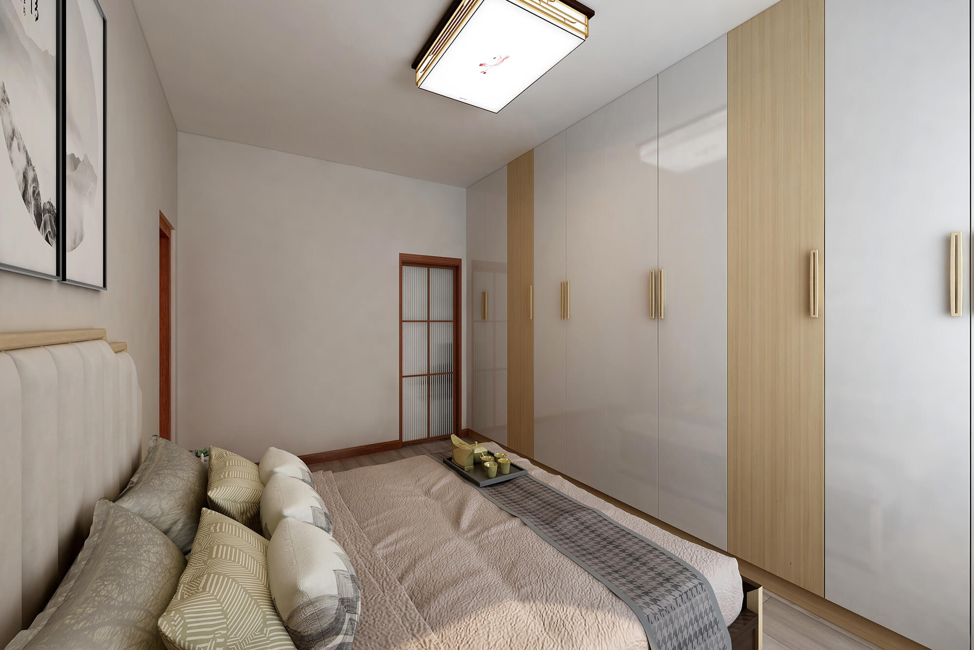 本案為5房2廳2衛(wèi),總面積155㎡。業(yè)主喜歡禪意新中式的感覺(jué),所以整體色彩搭配大都采用極簡(jiǎn)的淺色原木系來(lái)營(yíng)造一種寧?kù)o愜意的感覺(jué),營(yíng)造個(gè)性家居生活空間。