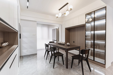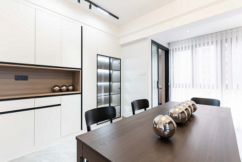 2、拓展生活陽(yáng)臺(tái)區(qū)域納入至餐廳,實(shí)現(xiàn)多人化聚餐功能。