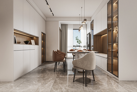 空間大面積描繪溫暖的棕灰色調(diào),將優(yōu)雅而內(nèi)斂的視覺(jué)觀感散布于每一個(gè)細(xì)節(jié)之中。設(shè)計(jì)師嘗試以一種接近生活本質(zhì)的視角觀察點(diǎn)滴日常的豐富性,將生活主場(chǎng)景面向自然景色,創(chuàng)造開闊明亮、安靜舒適的居住氛圍,讓每一位居住其中的人與自然對(duì)話,感受自在。